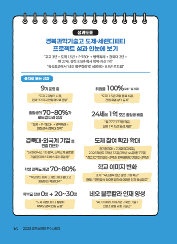 %uacbd%ubd81%uacfc%ud559%uae30%uc220%uace0 %ub3c4%uc81c%u00b7%uc138%ub80c%ub514%ud53c%ud2f0 %ud504%ub85c%uc81d%ud2b8 %uc131%uacfc %ud55c%ub208%uc5d0 %ubcf4%uae30%uc131%uacfc%ub3c4%ud45c%u201c%uace0%uad50 3%ub144 + %ub3c4%uc81c 1.5%ub144 + P-TECH + %ubcd1%uc5ed%ud2b9%ub840 + %uacbd%ubd81%ub300 2%ub144 = %ub9cc 27%uc138, %uacbd%ub825 8.5%ub144%u00b7%ud559%uc0ac %ud559%uc704%u00b7%uc790%uc0b0 1%uc5b5%u201d%u201c%ud2b9%uc131%ud654%uace0%uc5d0%uc11c %u2018%ub124%uc624 %ube14%ub8e8%uce7c%ub77c%u2019%ub85c %uc131%uc7a5%ud558%ub294 8.5%ub144 %ub85c%ub4dc%ub9f5%u201d%uc22b%uc790%ub85c %ubcf4%ub294 %uc131%uacfc9%uae30 %uc6b4%uc601 %uc911%u201c%ub3c4%uc81c 2%uae30%ubd80%ud130 %uc2dc%uc791, %ud604%uc7ac 9%uae30%uae4c%uc9c0 %uc548%uc815%uc801%uc73c%ub85c %uc6b4%uc601%u201d%uc878%uc5c5%uc0dd%uc758 70~80%%uac00 %ub85c%ub4dc%ub9f5 %ub530%ub77c %uc131%uc7a5%u201c%ub3c4%uc81c %u2192 P-TECH %u2192 %ubcd1%uc5ed%ud2b9%ub840 %u2192 %ud604%uc7a5%uadfc%uc18d%u00b7%uacbd%ubd81%ub300 %uc9c4%ud559%u201d%uacbd%ubd81%ub300%u00b7%uc678%uad6d%uacc4 %uae30%uc5c5 %ub4f1 %uc9c4%ucd9c %ub2e4%ubcc0%ud654%u201cSK%ud558%uc774%ub2c9%uc2a4 1%ucc28 %ud569%uaca9, %uc2a4%uc704%uc2a4%uacc4 %uae00%ub85c%ubc8c %uae30%uc5c5(%ud55c%uad6d%uc5d0%uc2a4%uc9c0%uc5d0%uc2a4(%uc8fc)) %ucde8%uc5c5 %ub4f1%u201d%ub3c4%uc81c %ucc38%uc5ec %ud559%uacfc %ud655%ub300%uc804%uae30%uc804%uc790%uacfc %u2192 %uae30%uacc4%uacfc%uae4c%uc9c0 %ub3c4%uc785, 2026%ud559%ub144%ub3c4 3%ud559%ub144 33%uba85/2%ud559%ub144 44%uba85(%ucd1d 77%uba85)* %ucc38%uace0: IOT%uc804%uc790%uacfc(2~3%ud559%ub144), %ucef4%ud4e8%ud130%uc751%uc6a9%uae30%uacc4%uacfc(2~3%ud559%ub144)%ud559%uad50 %uc774%ubbf8%uc9c0 %ubcc0%ud654%uacfc%uac70 : %u201c%ubb34%ub2e8%uacb0%uc11d%u00b7%ud761%uc5f0 %ub9ce%uc740 %uae30%ud53c %ud559%uad50%u201d%ud604%uc7ac : %u201c%ubb34%ub2e8%uacb0%uc11d %uc788%uc73c%uba74 %uc785%ud559%uc774 %uc5b4%ub824%uc6b4 %uc778%uae30 %ud2b9%uc131%ud654%uace0%u201d%ub124%uc624 %ube14%ub8e8%uce7c%ub77c %uc778%uc7ac %uc591%uc131%u201cAI%uac00 %ub300%uccb4%ud558%uae30 %uc5b4%ub824%uc6b4 %uace0%uc219%ub828 %uae30%uc220 + %uc778%ubb38%uc18c%uc591%uc744 %uac16%ucd98 %uae30%uc220%uc778%u201d%ud559%uc0dd %ub9cc%uc871%ub3c4 %uccb4%uac10 70~80%%u201c%u2018%ud559%uad50%ubcf4%ub2e4 %ud68c%uc0ac %ub098%uac00%ub294 %uac8c %ub354 %uc88b%ub2e4%u2019%uace0 %uc751%ub2f5%ud558%ub294 %ud559%uc0dd %ub2e4%uc218%u201d%ud559%ubd80%ubaa8 %ucc38%uc5ec 0%uba85 %u2192 20~30%uba85%u201c%ub3c4%uc81c%u00b7%uc138%ub80c%ub514%ud53c%ud2f0 %uc124%uba85%ud68c %ud559%ubd80%ubaa8 %ucc38%uc11d %uc778%uc6d0 %uae09%uc99d%u201d%ucde8%uc5c5%ub960 100%(2%uc6d4 1%uc77c %uae30%uc900)%u201c%ub3c4%uc81c 1.5%ub144 %uacfc%uc815 %uc885%ub8cc %uc2dc%uc810, %uc804%uc6d0 %ucde8%uc5c5 %uc0c1%ud0dc %uc720%uc9c0%u201d24%uc138%uc5d0 1%uc5b5 %ubaa8%uc740 %uc878%uc5c5%uc0dd %ubc30%ucd9c%u201c%uc6d4 777,777%uc6d0 %uc801%uae08, %uc2e4%uc81c 1%uc5b5 %uc790%uc0b0 %ub2ec%uc131 %uc0ac%ub840%u201d16 2025 %uc77c%ud559%uc2b5%ubcd1%ud589 %uc6b0%uc218%uc0ac%ub840%uc9d1%uace0%uad50%uc77c%ud559%uc2b5%ubcd1%ud589 %uc6b0%uc218%uc0ac%ub840%uc9d1_1223.indd 16 2025. 12. 24. %uc624%uc804 11:39