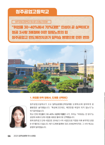 %uccad%uc8fc%uacf5%uc5c5%uace0%ub4f1%ud559%uad501. %ucde8%uc5c5%ub960 %ud558%ub77d %uc55e%uc5d0%uc11c, %ub3c4%uc81c%ub97c %uc120%ud0dd%ud558%ub2e4%uccad%uc8fc%uacf5%uc5c5%uace0%ub4f1%ud559%uad50%uac00 %uace0%uad50 %uc77c%ud559%uc2b5%ubcd1%ud589(%uc0b0%ud559%uc77c%uccb4%ud615 %ub3c4%uc81c%ud559%uad50)%uc5d0 %ucc38%uc5ec%ud558%uac8c %ub41c%ucd9c%ubc1c%uc810%uc740 %uc194%uc9c1%ud588%uc2b5%ub2c8%ub2e4. %u201c%ud2b9%uc131%ud654%uace0%uc778%ub370%ub3c4, %uc608%uc804%ub9cc%ud07c %ucde8%uc5c5%uc774 %ub418%uc9c0 %uc54a%ub294%ub2e4%u201d%ub294%uc704%uae30%uac10%uc774%uc5c8%uc2b5%ub2c8%ub2e4.%ud559%uad50 %uc804%uccb4 %ucde8%uc5c5%ub960%uc774 30~40% %uc218%uc900%uc5d0 %uba38%ubb3c%ub358 %uc2dc%uae30, %uc6b0%ub9ac%ub294 %u201c%uc774%ub300%ub85c%ub294 %uc548 %ub41c%ub2e4%u201d%ub294%uacf5%uac10%ub300 %uc18d%uc5d0%uc11c %ub3c4%uc81c %uc0ac%uc5c5%uc744 %uc0c8%ub85c%uc6b4 %ub3cc%ud30c%uad6c%ub85c %uc120%ud0dd%ud588%uc2b5%ub2c8%ub2e4.%ud604%uc7ac %uccad%uc8fc%uacf5%uace0 %ub3c4%uc81c %uc0ac%uc5c5%ub2e8%uc740 2016%ub144 3-1%ucc28 %uc0ac%uc5c5%ub2e8%uc73c%ub85c %uc9c0%uc815%ub41c %uc774%ud6c4 %ubcf8%uaca9%uc801%uc778 %uc6b4%uc6018~9%uae30%ub97c %ub9de%uace0 %uc788%uc2b5%ub2c8%ub2e4. %uc81c%uac00 %ub3c4%uc81c%uc5d0 %ud569%ub958%ud55c %uac83%uc740 2018%ub144%ubd80%ud130%uc9c0%ub9cc, %uadf8 %uc0ac%uc774 %ud559%uad50%ub294%ubd84%uba85%ud788 %ub2ec%ub77c%uc84c%uc2b5%ub2c8%ub2e4.%uccad%uc8fc%uacf5%uc5c5%uace0%ub4f1%ud559%uad50%uccad%uc8fc%uacf5%uc5c5%uace0%ub4f1%ud559%uad50 %uc815%uc18c%ub9dd %uc120%uc0dd%ub2d8 %uc778%ud130%ubdf0%u201c%ucde8%uc5c5%ub960 30~40%%uc5d0%uc11c 70%%ub300%ub85c%u201d %uc778%uc131%uc774 %uace7 %uc2e4%ub825%uc774%ub2e4!%uccad%uacf5 3%uc0ac%ub791 3%uc608%uc808%uc5d0 %uc774%uc740 %ud790%ub9c1%ub178%ud2b8%uc758 %ud798%uccad%uc8fc%uacf5%uc5c5%uace0 %ubc18%ub3c4%uccb4%uc804%uc790%uacfc%uac00 %uc77c%ud559%uc2b5 %ubcd1%ud589%uc73c%ub85c %ub9cc%ub4e0 %ubcc0%ud65456 2025 %uc77c%ud559%uc2b5%ubcd1%ud589 %uc6b0%uc218%uc0ac%ub840%uc9d1%uace0%uad50%uc77c%ud559%uc2b5%ubcd1%ud589 %uc6b0%uc218%uc0ac%ub840%uc9d1_1223.indd 56 2025. 12. 24. %uc624%uc804 11:40