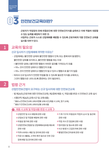 9%uac74%uac15%ud55c %uc9c1%uc7a5%uc0dd%ud65c%uc744%uc704%ud55c %uc548%uc804%ub178%ud2b8%u25cf %uc548%uc804%ubcf4%uac74%uccb4%uacc4%ub3c4%uc0ac%uc5c5%uc8fc%uadfc%ub85c%uc790%uac74%uc124%uc5c5 %uc77c%uc6a9%uadfc%ub85c%uc790%uc77c%ubc18%uadfc%ub85c%uc790%uc815%uae30%uad50%uc721%ud2b9%ubcc4%uad50%uc721%ucc44%uc6a9%uc2dc %uad50%uc721%uac74%uc124%uc5c5 %uae30%ucd08%uad50%uc721%uc791%uc5c5%ub0b4%uc6a9%ubcc0%uacbd%uc2dc %uad50%uc721%uc0ac%ubb34%uc9c1(%ud310%ub9e4%uc9c1) %ub9e4%ubc18%uae30 6%uc2dc%uac04, %ube44%uc0ac%ubb34%uc9c1 %ub9e4%ubc18%uae3012%uc2dc%uac04, %uad00%ub9ac%uac10%ub3c5%uc790 %uc5f0%uac04 16%uc2dc%uac04%ub2e8%uae30%uac04(%uac04%ud5d0%uc801) %uc791%uc5c5 2%uc2dc%uac04, %uc77c%uc6a9%uadfc%ub85c%uc790 3%uc2dc%uac04, %ud0c0%uc6cc%ud06c%ub808%uc778 %uc2e0%ud638%uc791%uc5c5 8%uc2dc%uac04, %uadf8 %uc678 16%uc2dc%uac041%uc8fc%uc77c %uc774%ud558 1%uc2dc%uac04, 1%uac1c%uc6d4 %uc774%ud558 4%uc2dc%uac04, %uadf8 %uc678 8%uc2dc%uac044%uc2dc%uac04%uc77c%uc6a9%uadfc%ub85c%uc790 1%uc2dc%uac04, %uadf8 %uc678 2%uc2dc%uac04%uad00%ub9ac%uac10%ub3c5%uc790%ubbfc%uac04%uc7ac%ud574%uc608%ubc29%uae30%uad00%uc548%uc804%uad00%ub9ac%uc804%ubb38%uae30%uad00,%ubcf4%uac74%uad00%ub9ac%uc804%ubb38%uae30%uad00,%uac74%uc124%uc7ac%ud574%uc608%ubc29 %uc804%ubb38%uc9c0%ub3c4%uae30%uad00,%uc548%uc804%uac80%uc0ac%uae30%uad00,%uc790%uc728%uc548%uc804%uac80%uc0ac%uae30%uad00,%uc11d%uba74%uc870%uc0ac%uae30%uad00%uc0ac%uc5c5%uc7a5 %uc548%uc804%ubcf4%uac74%ub2f4%ub2f9%uc790%uc548%uc804%ubcf4%uac74%uad00%ub828%uc5c5%ubb34 %uc885%uc0ac%uc790%uc548%uc804%ubcf4%uac74%uad00%ub9ac%ucc45%uc784%uc790%uc9c1%ubb34%uad50%uc721%uc2e0%uaddc 34%uc2dc%uac04, %ubcf4%uc218 24%uc2dc%uac04(%uc548%uc804%ubcf4%uac74%uad00%ub9ac%ub2f4%ub2f9%uc790 6%uc2dc%uac04)%uc548%uc804%uad00%ub9ac%uc790%ubcf4%uac74%uad00%ub9ac%uc790%uc548%uc804%ubcf4%uac74%uad00%ub9ac%ub2f4%ub2f9%uc790%ub178%ubb34%ub97c%uc81c%uacf5%ubc1b%ub294%uc790%ud2b9%uc218%ud615%ud0dc%uadfc%ub85c%uc885%uc0ac%uc790%uac74%uc124%uc7a5%ube44(27%uc885)%uc6b4%uc804%uc790%ub300%uc5ec%uc81c%ud488%ubc29%ubb38%uc810%uac80%uc6d0%uac00%uc804%uc81c%ud488%uc124%uce58 %ubc0f %uc218%ub9ac%uc6d0%ud654%ubb3c%ucc28%uc8fc(%uc218%ucd9c%uc785 %ucee8%ud14c%uc774%ub108, %uc2dc%uba58%ud2b8, %ucca0%uac15%uc7ac, %uc704%ud5d8%ubb3c%uc9c8)%ucd5c%ucd08 %ub178%ubb34%uc81c%uacf5 %uc2dc %uad50%uc721%ud2b9%ubcc4%uad50%uc721%ub2e8%uae30%uac04(%uac04%ud5d0%uc801) %uc791%uc5c5 1%uc2dc%uac04, %uadf8 %uc678 2%uc2dc%uac04%ub2e8%uae30%uac04(%uac04%ud5d0%uc801) %uc791%uc5c5 2%uc2dc%uac04, %uadf8 %uc678 16%uc2dc%uac04%uace8%ud504%uc7a5 %uce90%ub514%ud0dd%ubc30%uc6d0%ud035%uc11c%ube44%uc2a4 %ubc30%ub2ec%uc6d0%ub300%ub9ac%uc6b4%uc804%uae30%uc0ac%ubc29%ubb38%ud310%ub9e4%uc6d0%uadfc%ub85c%uc790%uad50%uc721%uc9c1%ubb34 %uad50%uc721%ud2b9%uace0 %uad50%uc7218%uc608%ube44%uc0b0%uc5c5%uc778%ub825%uc744%uc704%ud55c %uc548%uc804%ubcf4%uac74%ub098%uce68%ubc18%uadfc%ub85c%uc790%uac00 %uc791%uc5c5%uc7a5%uc758 %uc720%ud574%u00b7%uc704%ud5d8%uc694%uc778%uc5d0 %ub300%ud55c %uc548%uc804%ubcf4%uac74%uc9c0%uc2dd%uc744 %uc2b5%ub4dd%ud558%uace0 %uc774%uc5d0 %uc801%uc808%ud788 %ub300%uc751%ud560%uc218 %uc788%ub294 %ub2a5%ub825%uc744 %ubc30%uc591%ud558%uae30 %uc704%ud55c %uac83.%uc0ac%uc5c5%uc8fc%ub294 %uadfc%ub85c%uc790 %uc2a4%uc2a4%ub85c %uc0b0%uc5c5%uc7ac%ud574%ub97c %uc608%ubc29%ud560 %uc218 %uc788%ub3c4%ub85d %uadfc%ub85c%uc790%uc5d0%uac8c %uac01%uc885 %uc548%uc804%ubcf4%uac74 %uad50%uc721%uc744%uc2e4%uc2dc%ud560 %uc758%ubb34%uac00 %uc788%ub2e4. %uc0b0%uc5c5%uc7ac%ud574%ub294 %ubd88%uc548%uc804%ud55c %uc0c1%ud0dc%uc640 %ubd88%uc548%uc804%ud55c %ud589%ub3d9%uc774 %ub2e8%ub3c5 %ub610%ub294 %uc911%ubcf5%ub418%uc5b4 %ubc1c%uc0dd%ud55c%ub2e4. %ubd88%uc548%uc804%ud55c %uc0c1%ud0dc%ub97c %uc720%uc9c0%ud558%uace0, %ubd88%uc548%uc804%ud55c %ud589%ub3d9%uc744 %ud558%ub294 %uc774%uc720%u00bb %ubd88%uc548%uc804%ud55c %uc0c1%ud0dc%ub098 %ubd88%uc548%uc804%ud55c %ud589%ub3d9%uc774 %uc5b4%ub5a0%ud55c %uacb0%uacfc%ub97c %uac00%uc838%uc624%ub294%uc9c0 %ubaa8%ub984%u00bb %uc5b4%ub290 %uac83%uc774 %uc548%uc804%ud55c %uc0c1%ud0dc%uc774%uace0 %ud589%ub3d9%uc778%uc9c0 %ubaa8%ub984%u00bb %uc5b4%ub290 %uac83%uc774 %uc548%uc804%ud55c %uc0c1%ud0dc%uc774%uace0 %ud589%ub3d9%uc778%uc9c0 %uc54c%uace0 %uc788%uc73c%ub098 %ud589%ub3d9%uc73c%ub85c %uc62e%uae30%uc9c0 %uc54a%uc74c %ub530%ub77c%uc11c %uc2e0%uaddc %uc785%uc0ac%uc790%uac00 %uc548%uc804%ud55c %uc791%uc5c5%uc744 %ud560 %uc218 %uc788%ub3c4%ub85d %ud544%uc694%ud55c %uc9c0%uc2dd%uc744 %uad50%uc721%ud558%uace0, %uadf8%uac83%uc774 %ud589%ub3d9%uc73c%ub85c %ub098%ud0c0%ub098%ub3c4%ub85d %ud6c8%ub828%ud558%ub294 %uac83%uc774 %ud544%uc694%ud558%ub2e4. %ubc95 %uc81c29%uc870(%uadfc%ub85c%uc790%uc5d0 %ub300%ud55c %uc548%uc804%ubcf4%uac74%uad50%uc721) %uc81c2%ud56d%uc5d0 %ucc44%uc6a9 %uc2dc, %uc791%uc5c5%ub0b4%uc6a9 %ubcc0%uacbd %uc2dc %uc548%uc804%ubcf4%uac74 %uad50%uc721 %uc2e4%uc2dc %uc2dc%ud589%uaddc%uce59 %uc81c26%uc870(%uad50%uc721%uc2dc%uac04 %ubc0f %uad50%uc721%ub0b4%uc6a9)* %ubcc4%ud45c 4 %uc548%uc804%ubcf4%uac74%uad50%uc721 %uad50%uc721%uacfc%uc815%ubcc4 %uad50%uc721%uc2dc%uac04(%ucc44%uc6a9 %uc2dc %uad50%uc721, %uc815%uae30 %uad50%uc721)* %ubcc4%ud45c 5 %uc548%uc804%ubcf4%uac74%uad50%uc721 %uad50%uc721%ub300%uc0c1%ubcc4 %uad50%uc721%ub0b4%uc6a9%uc2e0%uaddc %uc785%uc0ac%uc790%uac00 %uc0b0%uc5c5%uc7ac%ud574%uc5d0 %ucde8%uc57d%ud55c %uc774%uc720%ub294?%uc0b0%uc5c5%uc548%uc804%ubcf4%uac74%ubc95%uc774 %uc694%uad6c%ud558%ub294 %uc2e0%uaddc %uc785%uc0ac%uc790%uc5d0 %ub300%ud55c %uc548%uc804%ubcf4%uac74%uad50%uc721%ucc44%uc6a9 %uc2dc %uad50%uc721 %ubc0f %uc791%uc5c5%ub0b4%uc6a9 %ubcc0%uacbd %uc2dc %uad50%uc721%uc0b0%uc5c5%uc548%uc804 %ubc0f %uc0ac%uace0 %uc608%ubc29%uc5d0 %uad00%ud55c %uc0ac%ud56d%uc0b0%uc5c5%ubcf4%uac74 %ubc0f %uc9c1%uc5c5%ubcd1 %uc608%ubc29%uc5d0 %uad00%ud55c %uc0ac%ud56d%uc704%ud5d8%uc131 %ud3c9%uac00%uc5d0 %uad00%ud55c %uc0ac%ud56d %uc0b0%uc5c5%uc548%uc804%ubcf4%uac74%ubc95%ub839 %ubc0f %uc0b0%uc5c5%uc7ac%ud574%ubcf4%uc0c1%ubcf4%ud5d8 %uc81c%ub3c4%uc5d0%uad00%ud55c %uc0ac%ud56d %uc9c1%ubb34%uc2a4%ud2b8%ub808%u